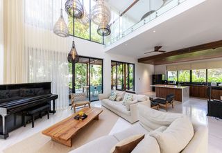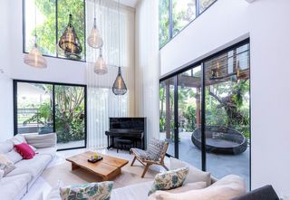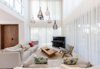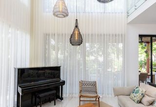 In dieser atemberaubenden Villa setzen die 6,4 Meter hohen Fenster ein architektonisches Statement und stellen eine technische Herausforderung dar. Die Lösung? Schnurzug-Systeme von Silent Gliss.
